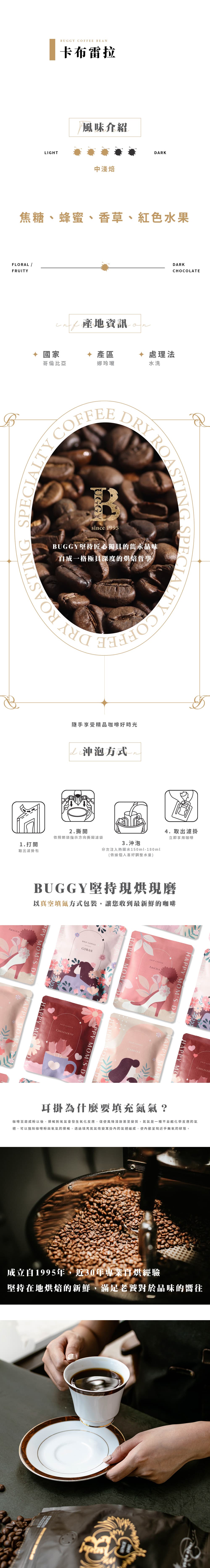 哥倫比亞 卡布雷拉.水洗.10入/盒 國家:哥倫比亞 產區:娜玲瓏 烘焙程度:中淺焙 等級:Excelso 品種:Castillo 風味:焦糖、蜂蜜、香草、紅色水果 規格 10入/盒 數量 - + 加入購物車 立即結帳 上一筆 回到列表 下一筆